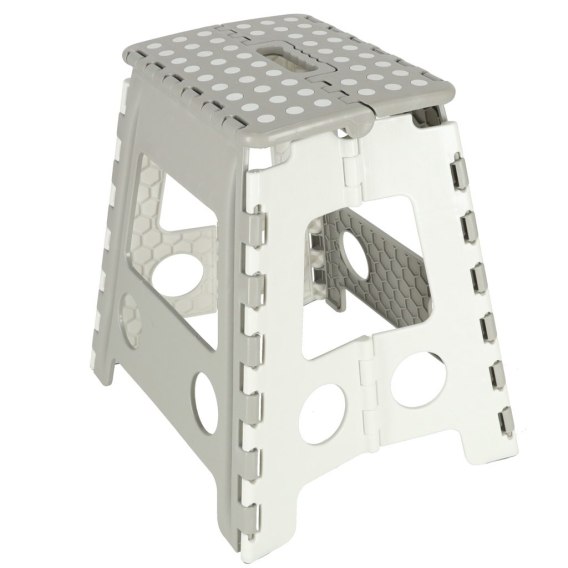 Stołek ułatwia sięganie w miejsca, które normalnie znajdują się poza Twoim zasięgiem. Dodatkowo jest on składany, dzięki czemu możesz go schować i wyciągnąć, dopiero gdy będziesz go potrzebować. Posiada antypoślizgową warstwę, która zapewnia bezpieczeństwo podczas korzystania. Maksymalna obciążenie stołka wynosi 150 kilogramów.