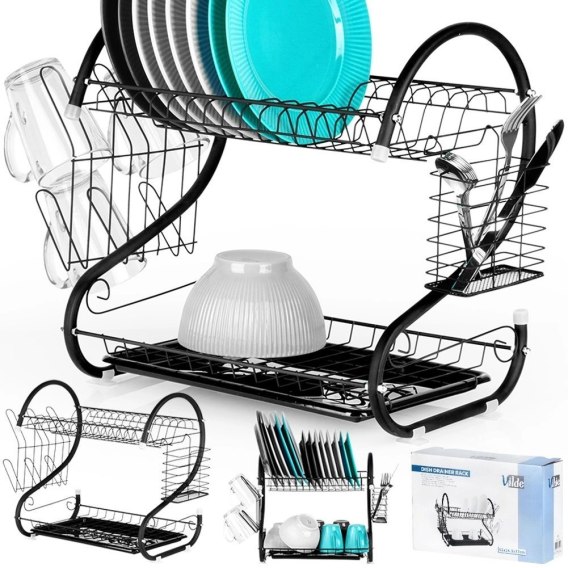 Suszarka do Naczyń na Talerze Sztućce 2-Poziomowa Czarna VILDE 52x24,5x38cm