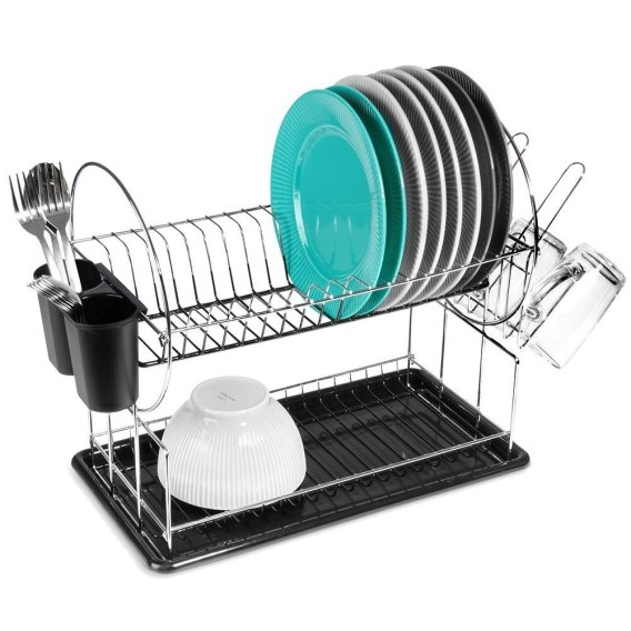 Suszarka do Naczyń na Talerze Sztućce 2-poziomowa Czarna NAVA 50x23,5x36 cm