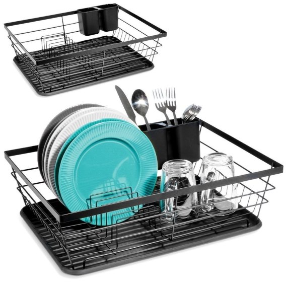 Suszarka na naczynia talerze kubki sztućce czarna ociekacz do naczyń loft