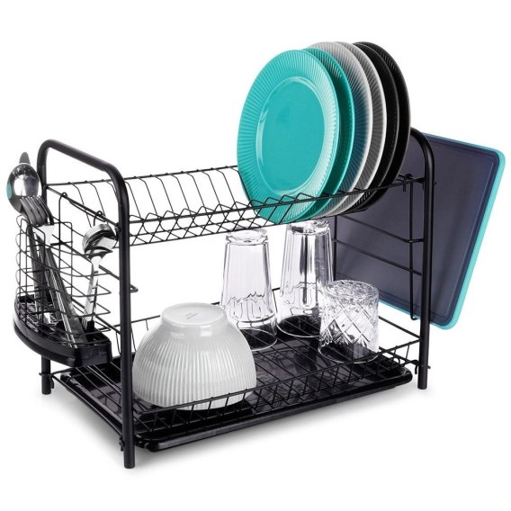 Suszarka na Naczynia 2-Poziomowa Czarna Pojemna VILDE 51,5 x 24,5 x 33 cm