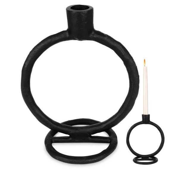 SOLIDNY - Wykonany z najwyższej jakości aluminium w czarnym kolorze. Świecznik posiada okrągłą podstawę, która zapewni stabilność.