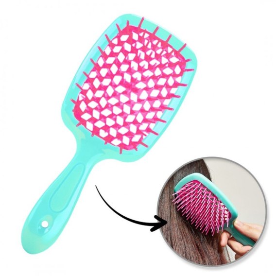 Praktyczna szczotka do włosów Cechy produktu: - Szczotka jest idealna do rozczesywania włosów zarówno suchych, jak i mokrych.