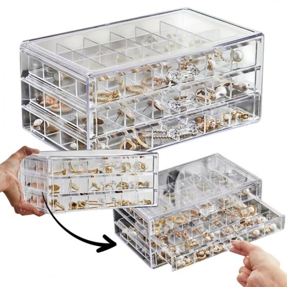 Szkatułka na biżuterię, organizer transparentny - 3 szuflady, 72 przegródki PD159B