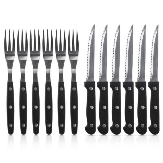 SOLIDNE - Zestaw sztućców dla sześciu osób. Składający się z 6 noży oraz 6 widelców wykonanych ze stali nierdzewnej z uchwytami wykonanymi z tworzywa w kolorze czarnym.