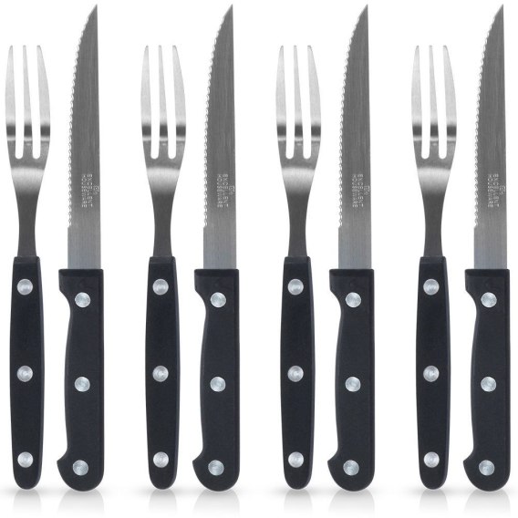 Sztućce do Steków Burgerów Stalowe Zestaw 8 el. BBQ Ząbkowane Ostrze
