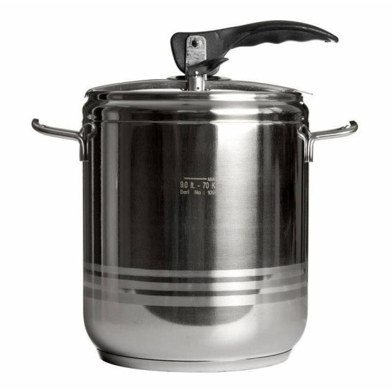 PRZYDATNY - Szybkowar o pojemności 9 litrów. Pomoże zaoszczędzić czas podczas przygotowywania posiłków. Szybkowar ma wymiary 25 x 31,5 x 22 cm.