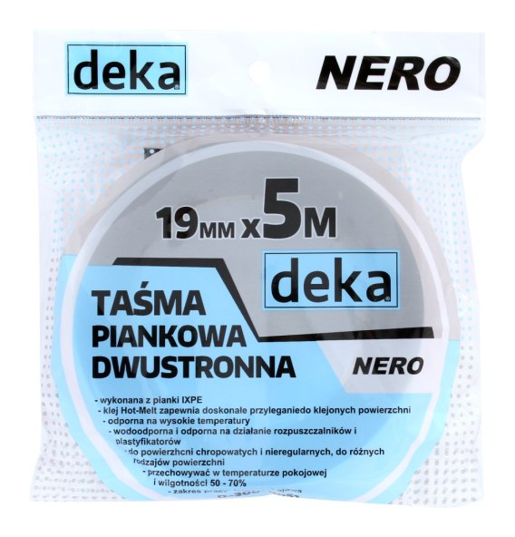 TAŚMA DWUSTRONNA PIANKOWA NERO CZARNA 19MM*5M DEKA
