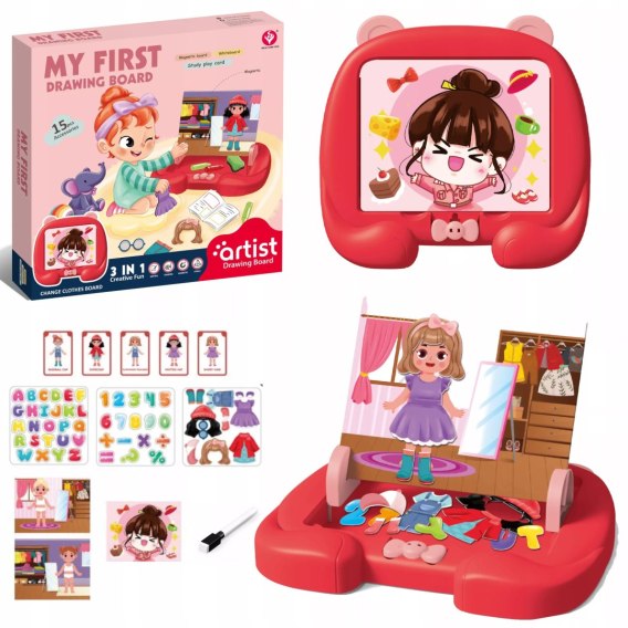 Kolorowa grafika z mody ubranek garderoby przyciąga uwagę dziecka i zachęca do nauki poprzez tematykę bliską jego zainteresowaniom. Motyw moda wspiera:
