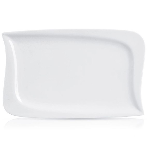 <li><strong>NOWOCZESNY DESIGN</strong> - Utrzymany w modnej, białej kolorystyce. Talerz ma elegancki wygląd nieregularnego prostokąta z delikatnie zaokrąglonymi brzegami. Pięknie prezentuje się na stole wraz z inną zastawą.</li>