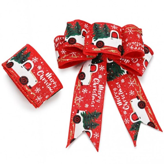 Kolor: czerwona taśma z białymi samochodzikami oraz choinkami  Wymiary: