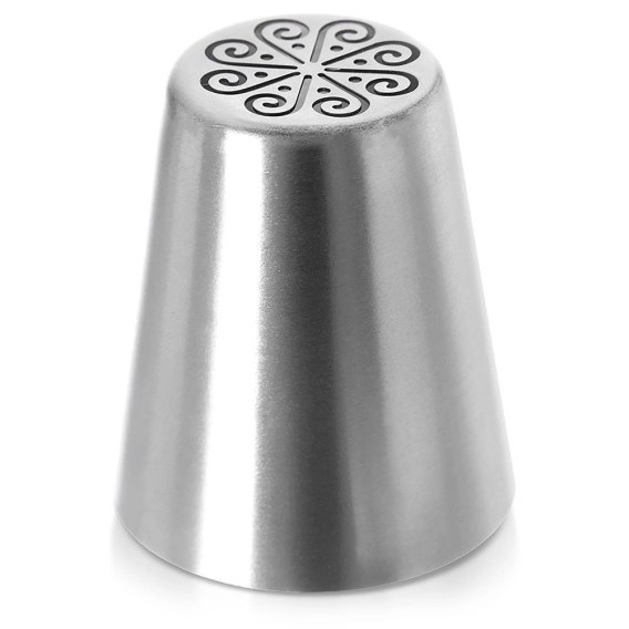 Stalowa tylka rosyjska niezwykle przydatna do tworzenia wzorów i dekoracji na ciastach, tortach czy babeczkach. Pozwala na łatwe i efektowne zdobienie wypieków, dodając im wyjątkowy wygląd i charakter. Tylka ma charakterystyczny kształt, który umożliwia tworzenie dekoracji w efektownym kształcie. Tylka jest odpowiednia zarówno dla profesjonalnych cukierników, jak i amatorów wypieków.