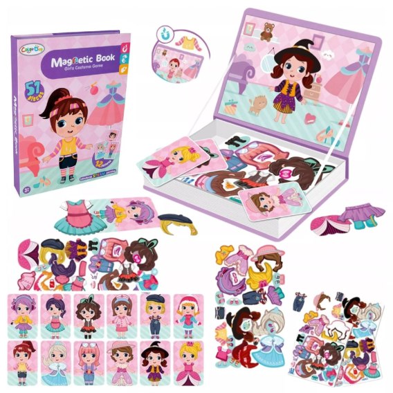 Ubierankamagnetyczna w formie książki to połączenie zabawy i edukacji - pomaga rozwijać wyobraźnię, estetykę i małą motorykę. Idealna na prezent dla każdej małej stylistki.