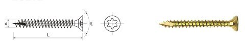 WKRĘT DO DREWNA OCYNK ŻÓŁTY NA TORX 5.0*30MM T25 UN
