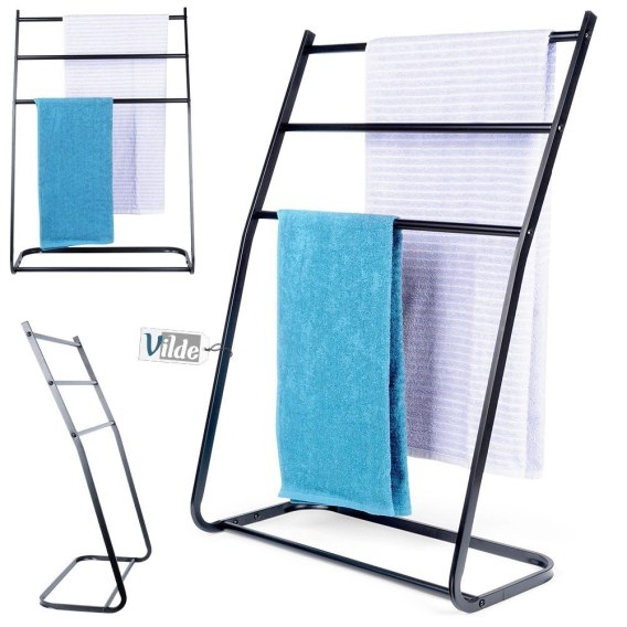 ⭐ Wolnostojący wieszak na ręczniki - Praktyczny, wolnostojący wieszak na ręczniki lub ubrania z trzema poprzeczkami.