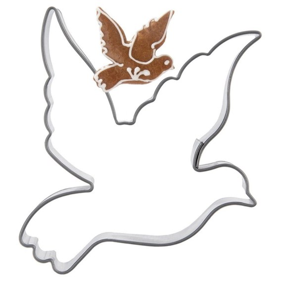 Wykrawacz cukierniczy pozwoli stworzyć pierniczki oraz ciasteczka w kształcie gołąbka. Niezastąpiony w kuchni, przydatny dla miłośników pieczenia. Dzięki niemu przygotujesz ciastka o wyjątkowym wzorze. Świetnie sprawdzi się do przygotowania świątecznych wypieków oraz ciasteczek na wesele lub komunię, np. jako podziękowania dla gości. Wykrawacz pozwoli stworzyć również mini kanapki w oryginalnym kształcie lub ozdoby z masy cukrowej.