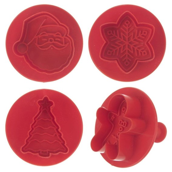 Wykrawacze do Ciastek 4 szt. ORION Boże Narodzenie z Tłokiem Czerwone