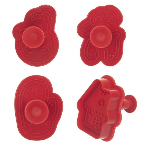 <li><strong>PRAKTYCZNE</strong> - Zestaw czterech wykrawaczy cukierniczych wraz z tłokiem w kształcie: renifera, rękawicy, domku oraz bałwana. Idealne do przygotowania ciasteczek i pierników na Boże Narodzenie.</li>