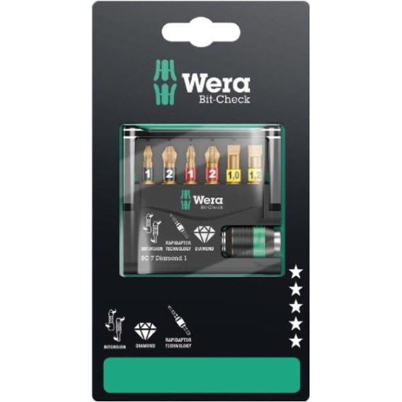 ZESTAW BITÓW BIT-CHECK 7 DIAMOND 1 SB, NA BLISTRZE, 7 CZ WERA