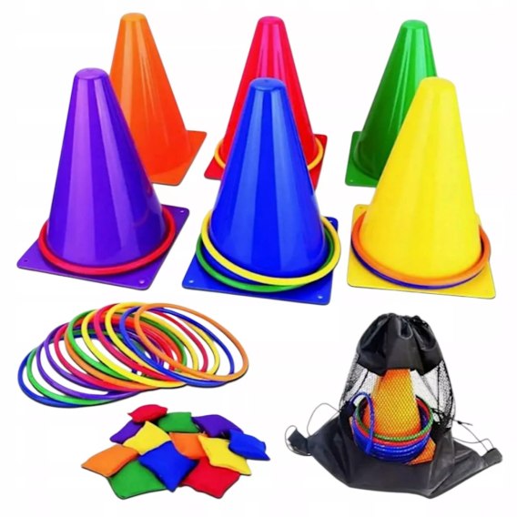 ZESTAW PACHOŁKÓW TRENINGOWYCH PACHOŁKI STOŻKI WORECZKI OBRĘCZE GRA RUCHOWA