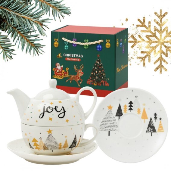 ZESTAW ŚWIĄTECZNY - dzbanek z filiżanką i talerzykiem w ozdobnym pudełku KB28
