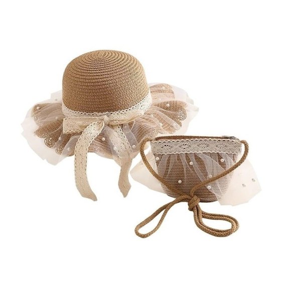 Zestal kapelusz dziecięcy słomkowy + torebka słomkowa TIUL PEREŁKI