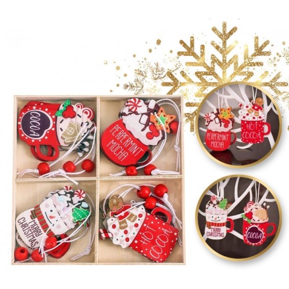Zawieszki choinkowe PIERNICZKI drewniane 12 szt w opakowaniu BSN48