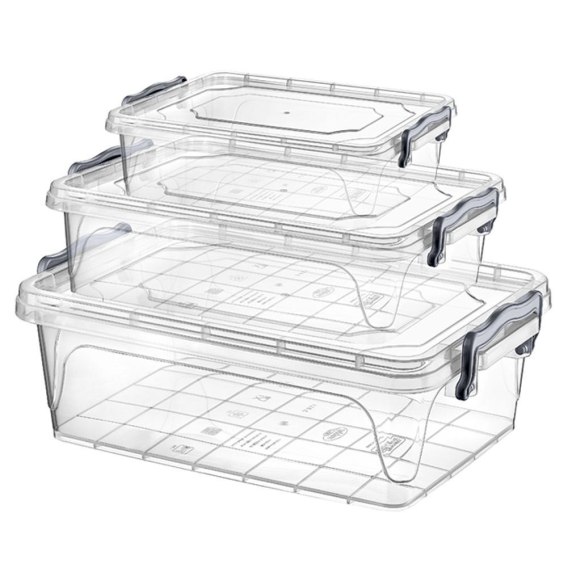 Pojemnik kuchenny do żywności z pokrywką klipsami zestaw komplet pojemników 3 sztuki