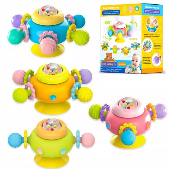 • 4 wirujące grzechotki z przyssawką