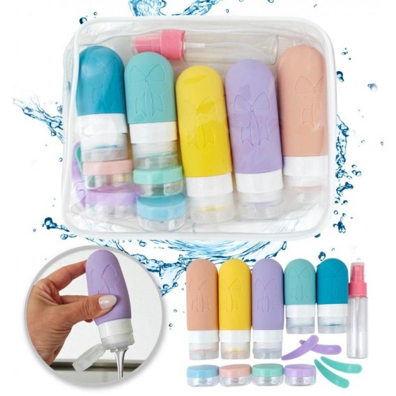 Zestaw silikonowych pojemniczków, buteleczek, słoiczków podróżnych 14w1 KS143