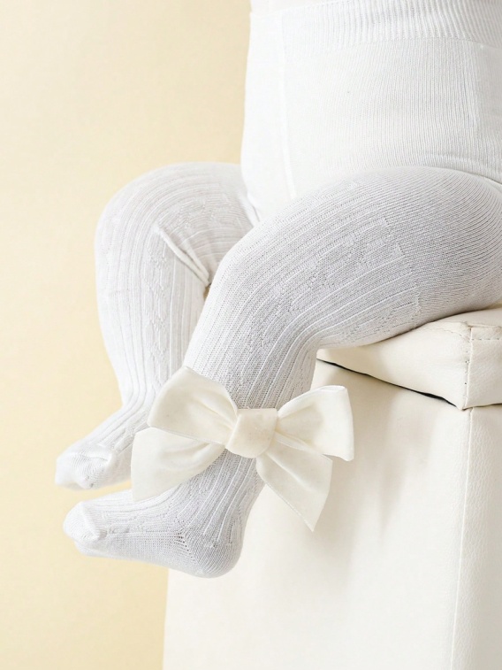 1 para legginsów z bocznym kokardką dla dziewczynek w wieku 1-3 lat, miękkie, elastyczne spodnie z bawełny dla niemowląt,