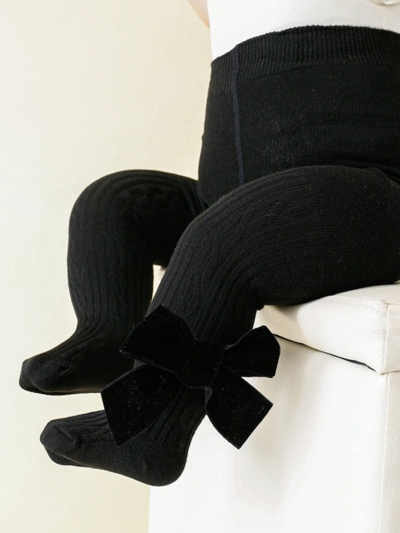 1 para legginsów z bocznym kokardką dla dziewczynek w wieku 1-3 lat, miękkie, elastyczne spodnie z bawełny dla niemowląt,