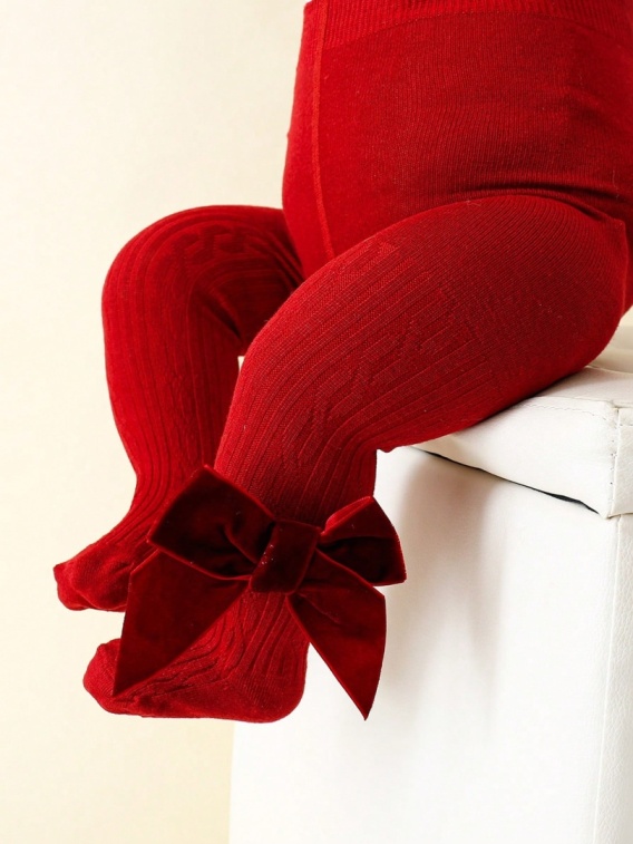 1 para legginsów z bocznym kokardką dla dziewczynek w wieku 1-3 lat, miękkie, elastyczne spodnie z bawełny dla niemowląt,