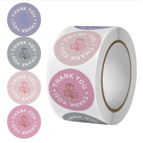 500 sztuk naklejek THANK YOU na taśmie średnica 25mm dekoracyjne naklejki samoprzylepne etykiety NNK03