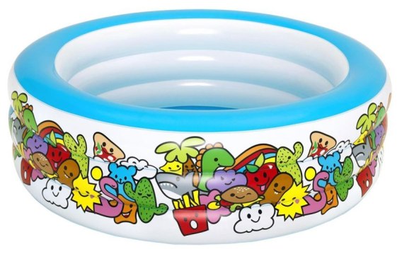 Basen dla dzieci idealnie sprawdzi się w gorące dni. Pozwoli na przyjemne ochłodzenie. Ma ciekawy design - kolorowe zwierzątka na pewno przykują uwagę. Jest dmuchany i solidny. Trwałość wynika z zastosowania wytrzymałego tworzywa. Ścianki boczne basenu składają się z trzech dmuchanych pierścieni, dzięki którym basen jest stabilny i bezpieczny.