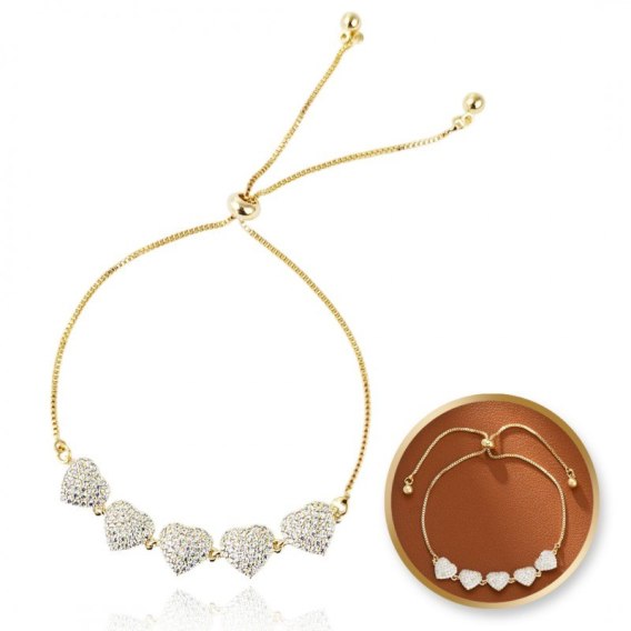 Bransoletka na rękę stal chirurgiczna pozłacana 14k złotem, SERCA cyrkonie BST1534