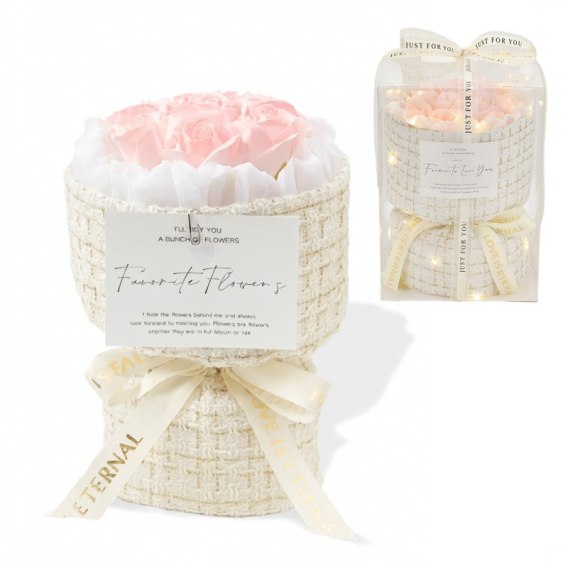 Bukiet zapachowych kwiatów mydlanych w pudełku na prezent, świecące LED BUK22