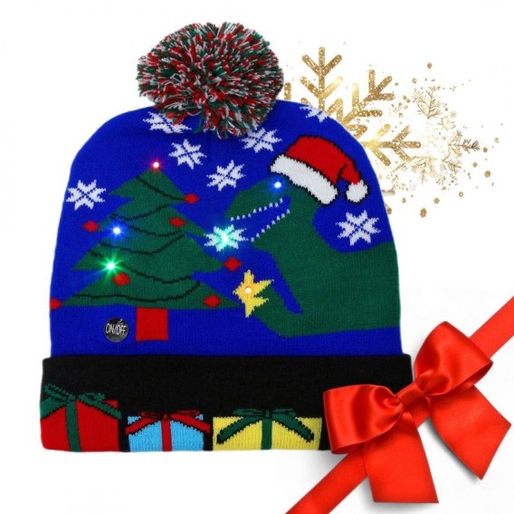 Czapka świąteczna świecąca LED z pomponem, DINOZAUR Świąteczny CZ53