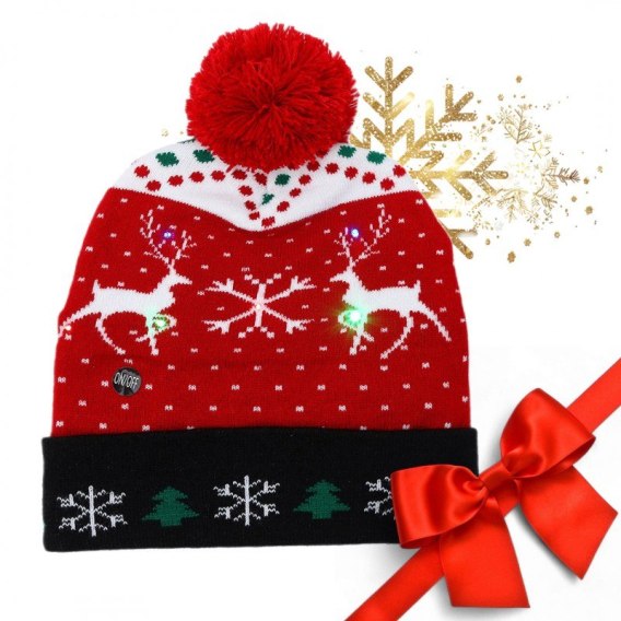 Czapka świąteczna świecąca LED z pomponem, RENIFERY Boże Narodzenie CZ51
