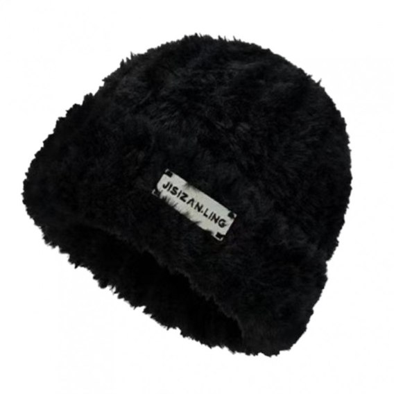 Czapka zimowa pluszowa, miękka i ciepła, z naszywką, czarna CZ31WZ3