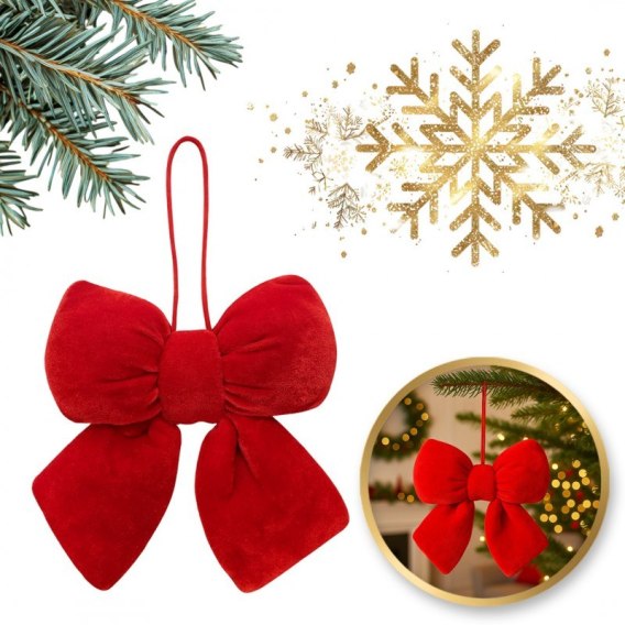 Czerwona kokarda, aksamitna, ozdoba świąteczna 14 x 5cm WOZ41