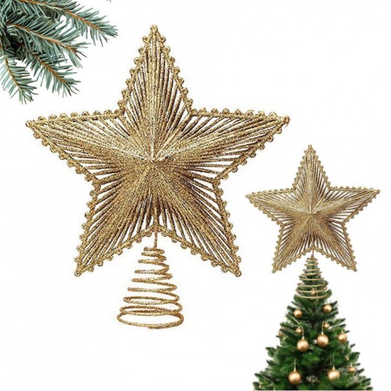 Czubek na choinkę, GWIAZDA BOŻE NARODZENIE złota brokatowa KSN147WZ1