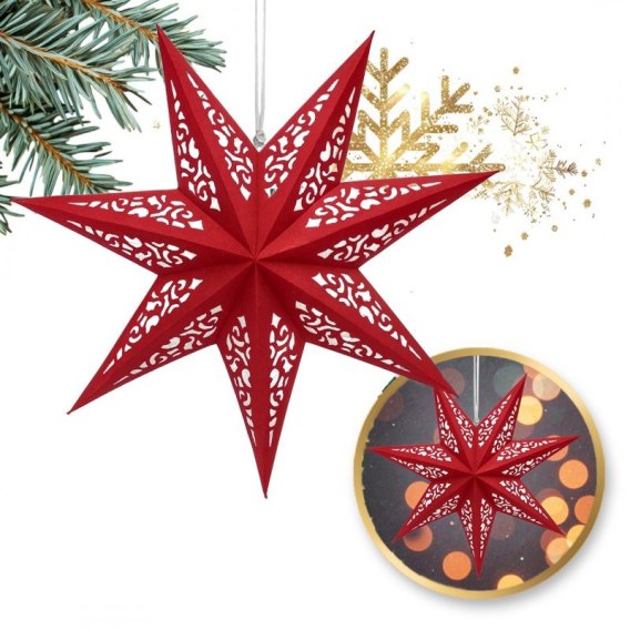 DUŻA GWIAZDA PAPIEROWA ŚWIĄTECZNA AŻUROWA welurowa bordowa 60 cm WITRAŻ 3D WG20