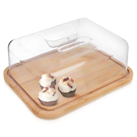 Deska drewniana do krojenia i serwowania. W zestawie praktyczny klosz, który pozwoli na przykrycie przechowywanych przekąsek, dzięki czemu ochronimy je przed wyschnięciem i zachowamy dłużej ich świeżość. Deska z kloszem jest również przydatna podczas organizacji spotkań w ogrodzie, możemy serwować na niej owoce, przekąski, ciasta i wędliny, a przykrycie uchroni je przed owadami.