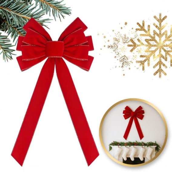 Duża czerwona kokarda ozdoba świąteczna na drzwi, choinkę 27 x 50 cm WOZ45