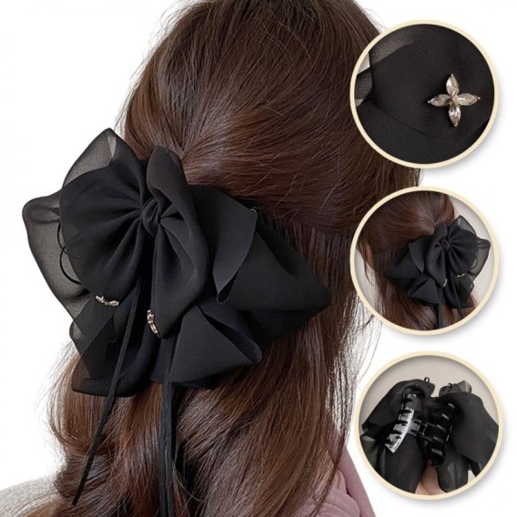 Duża kokarda tiulowa, spinka do włosów, klamra kwiat cyrkonie SP325CZ