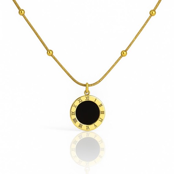 Dwustronny naszyjnik stal szlachetna pozłacana 14k złotem, czarna lub perłowa tarcza zegara NST2226