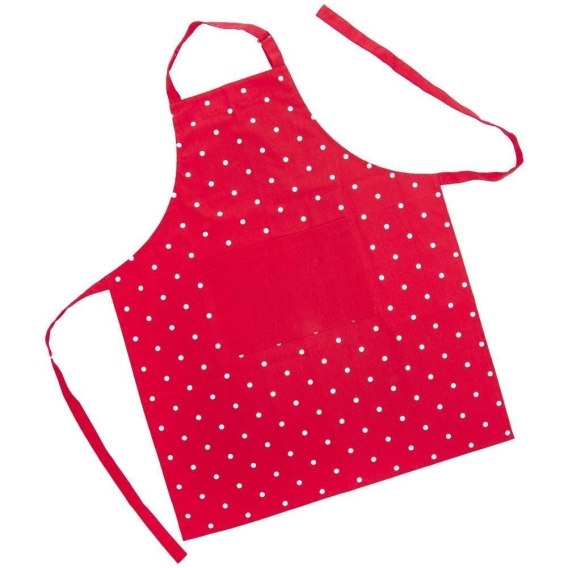 BAWEŁNIANY - Bawełniany, wiązany fartuch kuchenny w modnym wzorze. Fartuch w czerwonym kolorze w białe kropki. Stylowy fartuch będzie ciekawym elementem ozdobnym odzieży w kuchni.