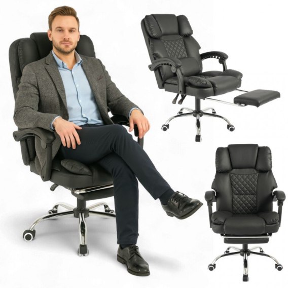 Fotel biurowy obrotowy MASTER PRESTIGE, podnóżek i masażer- ecoskóra czarny KO42CZ