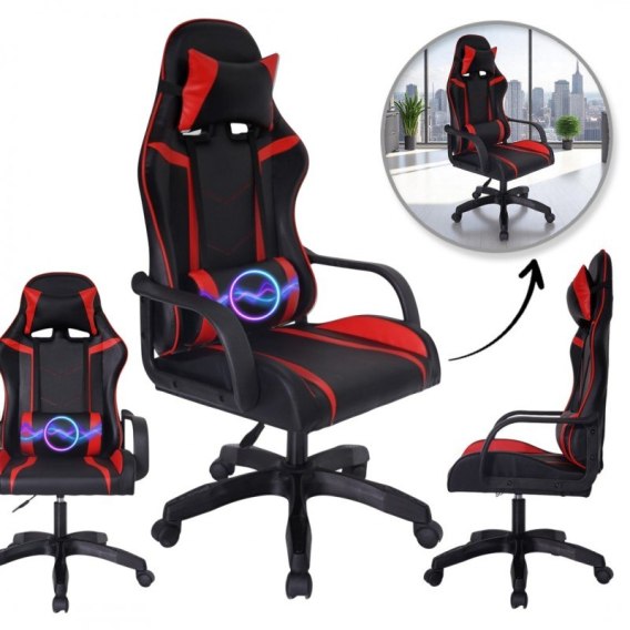 poduszka z masażerem podłączanym do portu USB Zdjęcia poniżej przedstawiają rzeczywisty produkt. REGULACJA - fotel posiada regulacje wysokości siedziska. Dzięki temu możesz dostosować jego wysokość do swoich indywidualnych potrzeb co jest niewątpliwą zaletą. Pokrycie - szerokie siedzisko, oparcie, zagłówek oraz wierzchnia strona podłokietników powleczone wysokiej jakości ekoskóra, oraz zastosowanie pianki EPE. Wymiary kartonu z krzesłem: